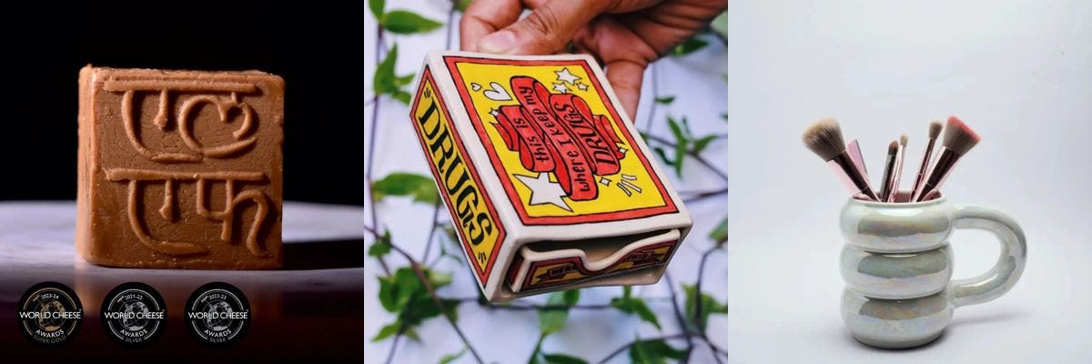 One: This is for all the cheese lovers out there! Have you tried Brunost yet? What is it, you ask? It’s made by caramelising whey till it turns golden brown—giving it the flavour of salted milk fudge, and a texture that’ll remind you of peda. This one’s made by Eleftheria in India, and has actually beaten some of the world’s best cheeses at the World Cheese Awards (Super Gold in 2023, Silver in 2021).